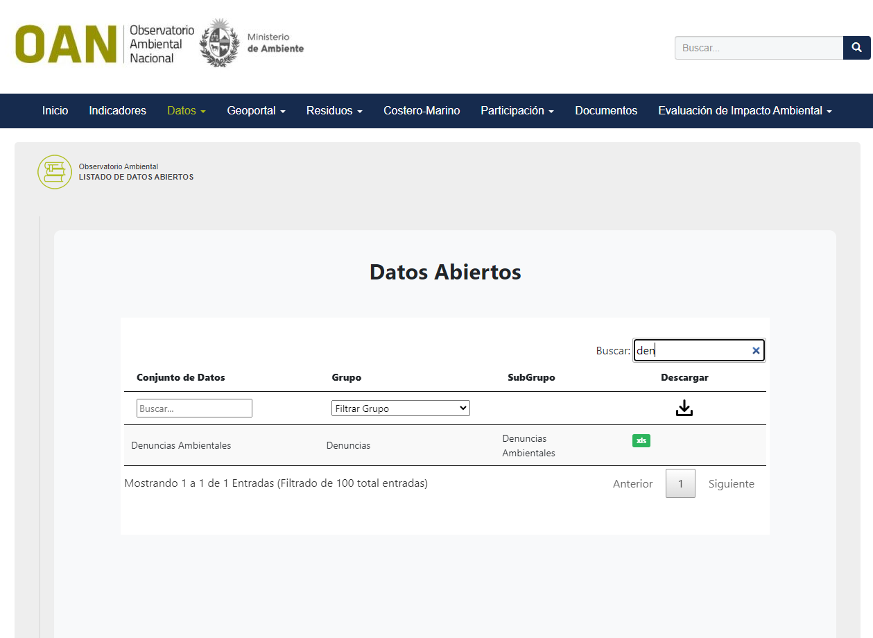 Acceder a la sección de datos abiertos del Observatorio Ambiental Nacional (OAN).